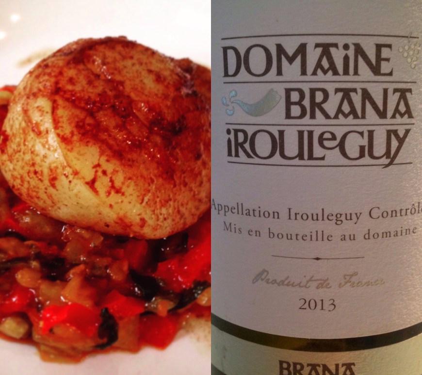 Après le rouget, on réutilise les poivrons confits (pourquoi pas un reste de la recette précédente) pour l’associer à la saint-jacques, cuite meunière. Et qu’est ce qu’on boit avec ça ? Il faut donc un vin blanc ayant un beau volume et de la structure, qui saura faire face au saveurs puissantes et épicées du chorizo et du piment d’Espelette ainsi qu’à la rondeurs des poivrons … Continuer de lire Accord mets / vin sur la Saint-Jacques / Poivrons confits / Chorizo
